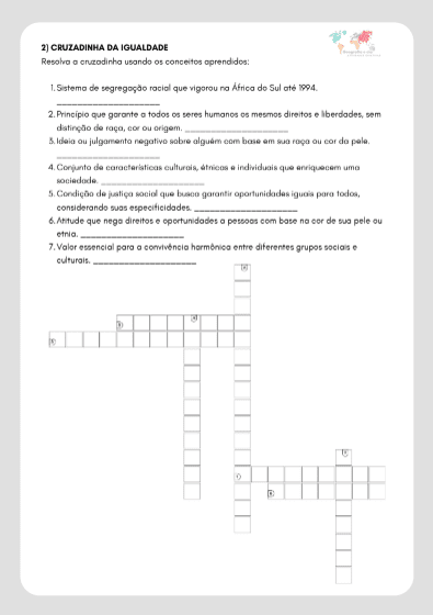 • Atividade 2: Cruzadinha da Igualdade — conceitos de diversidade, equidade e respeito