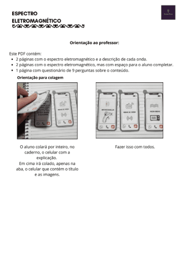 Nesta atividade criativa, os alunos exploram as faixas do espectro eletromagnético por meio de um modelo de celular para recortar e montar, relacionando cada onda a suas características e aplicações. Além disso, a proposta inclui um questionário com 9 perguntas que aprofundam o conteúdo, promovendo reflexão e análise. Ideal para turmas do Ensino Médio, a atividade é interativa, visual, pronta para imprimir e pode ser usada como recurso de revisão ou avaliação alternativa.