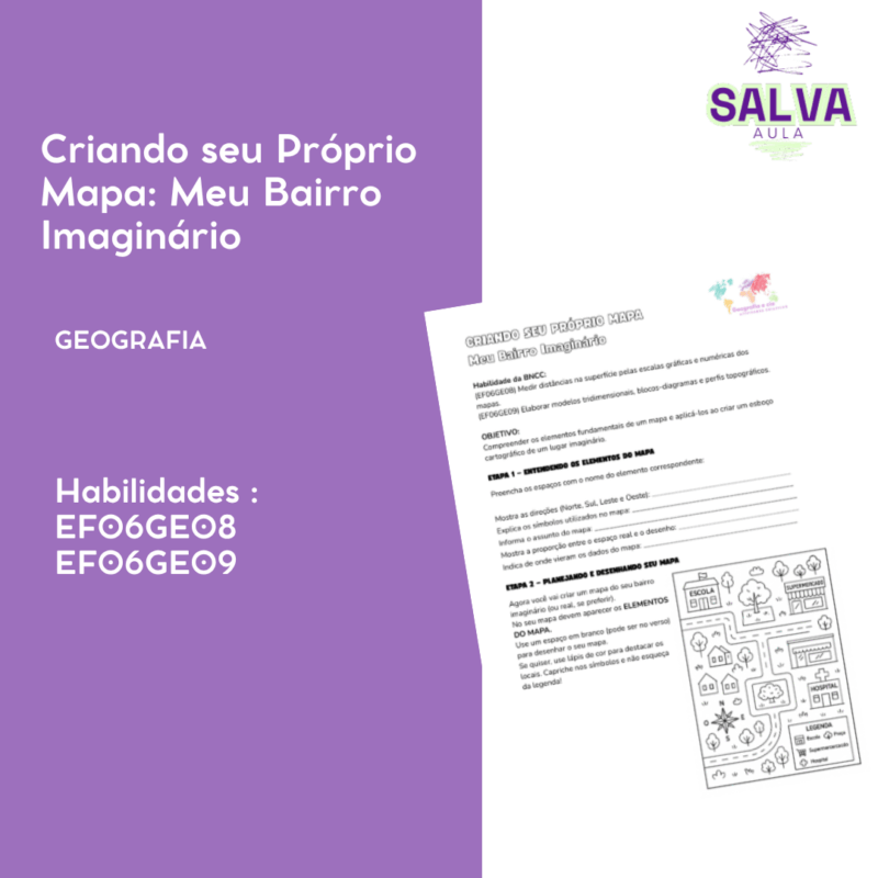 Indicada para o 6º ano, esta atividade estimula a criatividade ao propor que os alunos desenhem um bairro fictício, aplicando elementos da cartografia como legenda, escala e orientação. Ideal para trabalhar localização e representação do espaço. Pronta para imprimir.