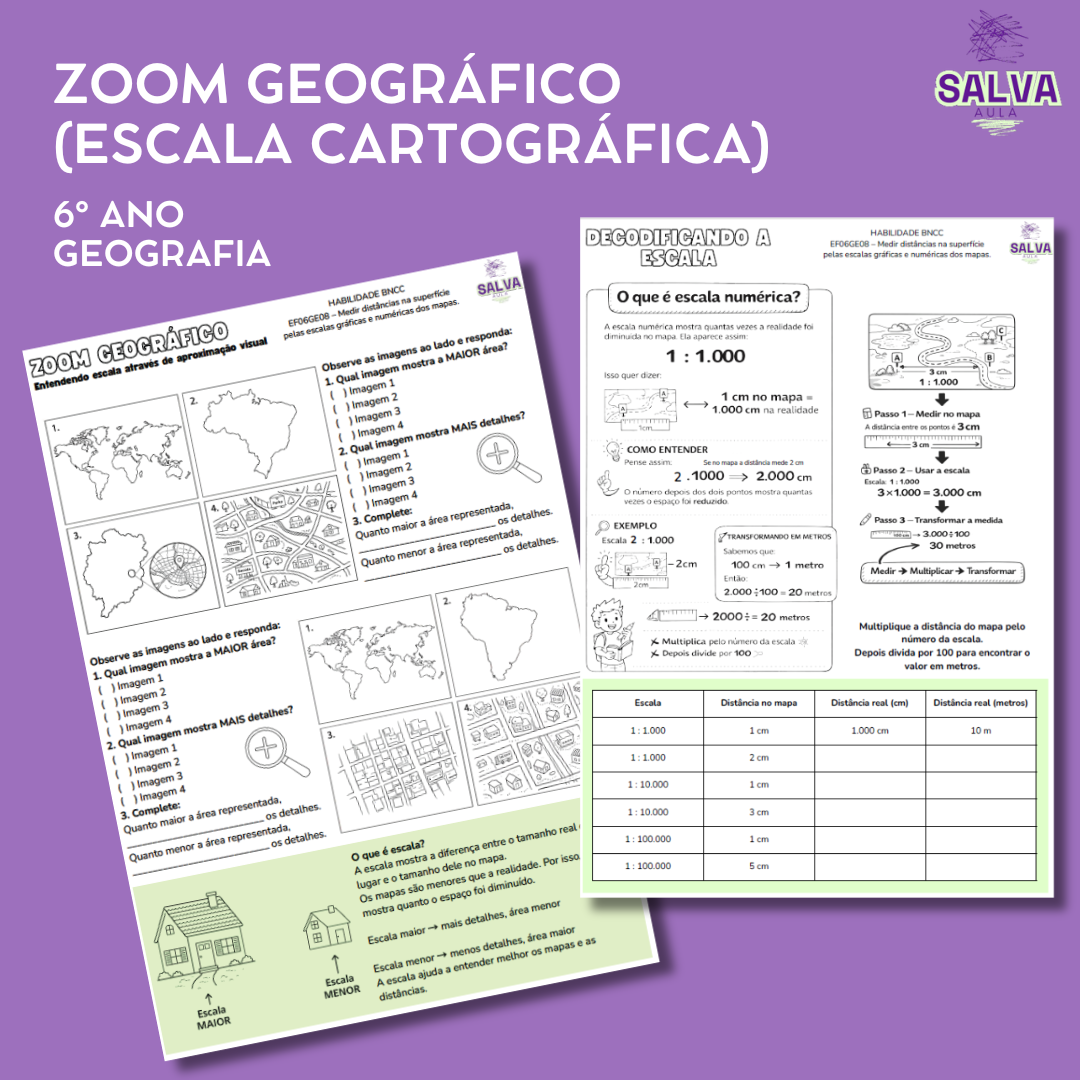 Este material foi criado para ajudar seus alunos a entenderem o conceito de escala cartográfica de forma visual, prática e significativa, desenvolvendo o pensamento espacial com atividades simples e envolventes.