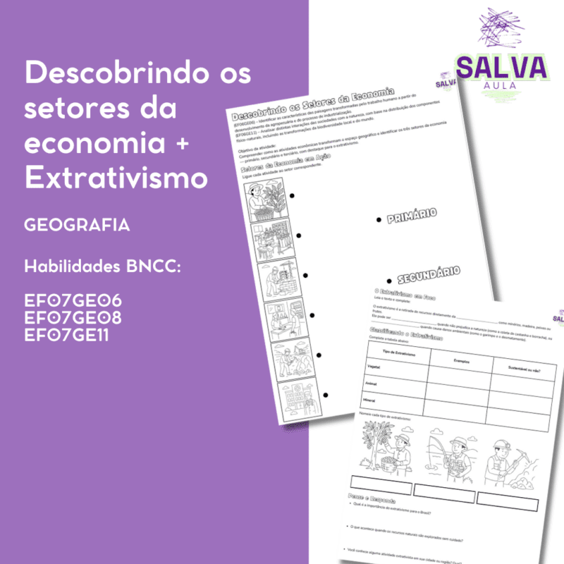 Economize tempo e transforme suas aulas com este PDF pronto para imprimir sobre os Setores da Economia e o Extrativismo, totalmente alinhado à BNCC (EF06GE06 e EF06GE11).