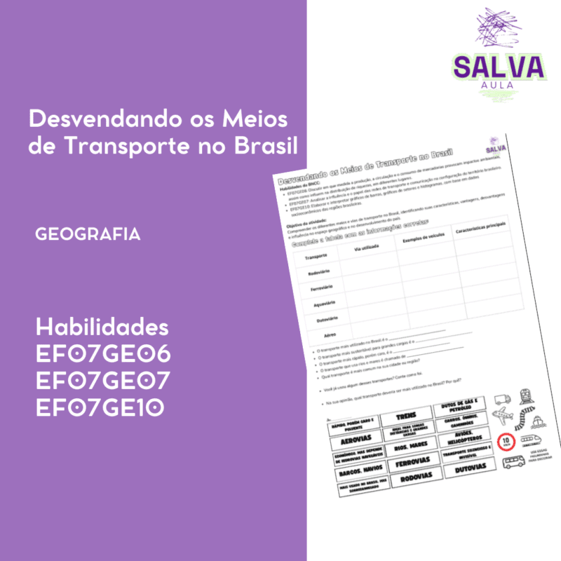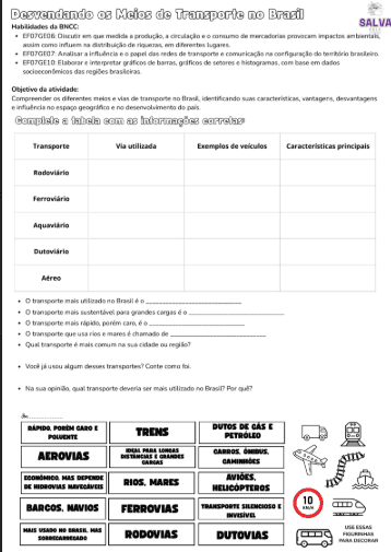Perfeito para o 7º ano do Ensino Fundamental, este PDF estimula a compreensão dos sistemas de transporte e sua influência no território, na economia e no meio ambiente.