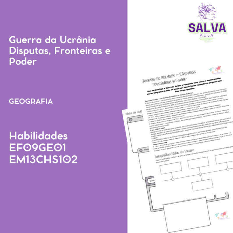 Ideal para turmas do Ensino Médio e também aplicável no 9º ano, o material propõe uma leitura reflexiva sobre as disputas territoriais, os interesses de poder e os impactos globais desse conflito contemporâneo.