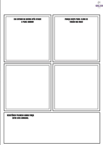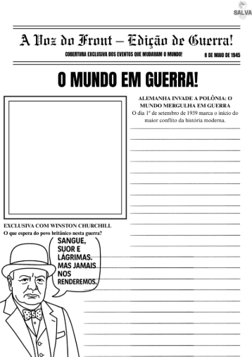 Com este material em formato de jornal histórico, os alunos assumem o papel de repórteres da época e registram os principais acontecimentos do conflito — da invasão da Polônia ao fim da guerra em 1945.
