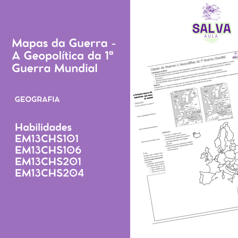 Baixe o PDF e leve um material visual, reflexivo e completo para discutir a geopolítica da Primeira Guerra Mundial.
