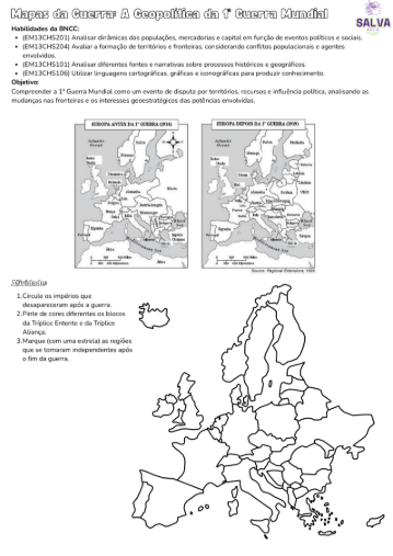 Atividades de Geografia • Atividades de Geografia Ensino Médio • Atividades adaptadas de Geografia • PDF pronto para imprimir • Atividades alinhadas à BNCC • Atividades de Geopolítica • 1ª Guerra Mundial