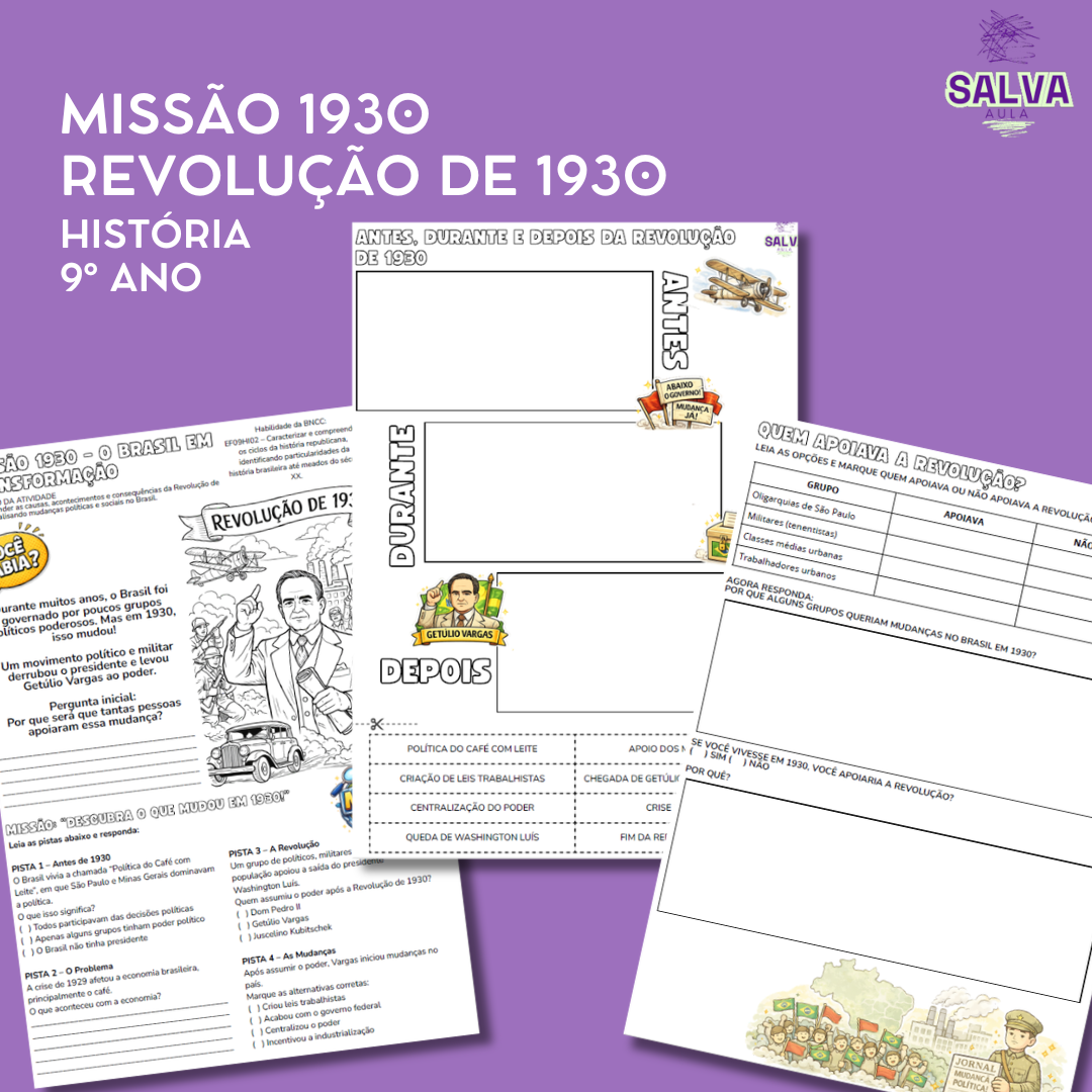 Transforme suas aulas com esta sequência investigativa sobre a Revolução de 1930, pensada para engajar os alunos e facilitar sua rotina!